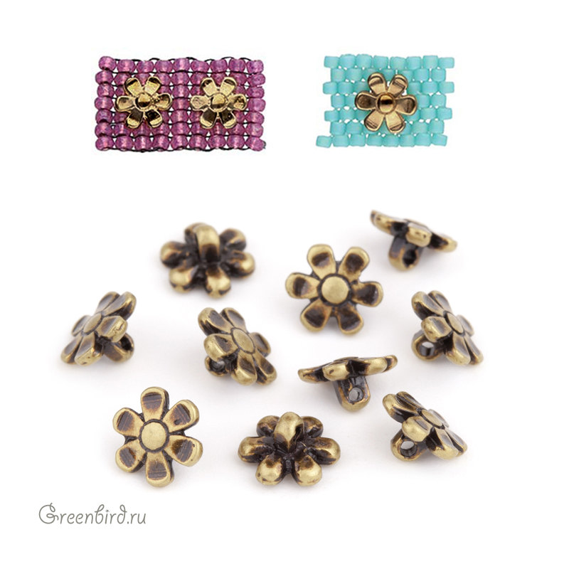 Металлический декоративный элемент CYMBAL "Gerani" для работы с бисером размером 11/0. Размер: 6 мм, отверстия для крепления: 0,8 мм. Материал: латунь, покрытие: античная латунь. Производство: Греция. Цена указана за 1 шт.