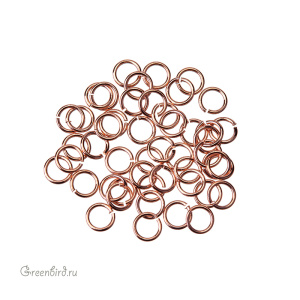 Фурнитура для бижутерии - соединительные кольца. Материал: сталь, покрытие: розовое золото. Размер: 4 мм, внутренний диаметр: 3 мм, толщина проволоки: 0,7 мм. Производство: Корея. Цена указана за 5 гр (примерно 140 штук).