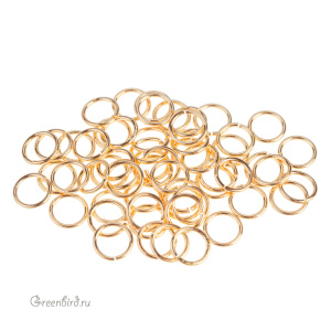 Фурнитура для бижутерии - соединительные кольца. Материал: латунь, покрытие: золото. Диаметр (внешний): 7,1 мм, толщина проволоки: 0,8 мм. Производство: Китай. Цена указана за 5 гр (примерно 47 штук).