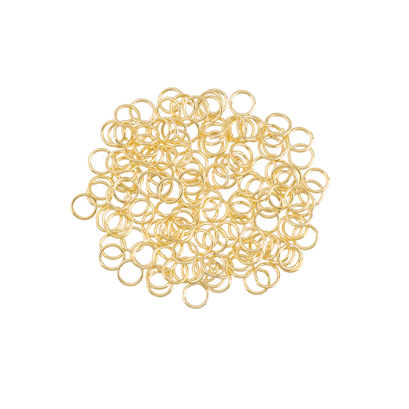 Фурнитура для бижутерии - соединительные кольца. Материал: латунь, покрытие: золото. Диаметр (внешний): 4,9-5,1 мм, толщина проволоки: 0,65-0,8 мм. В зависимости от партии размер может незначительно отличаться. Производство: Китай. Цена указана за 5 гр (примерно 120-125 штук).