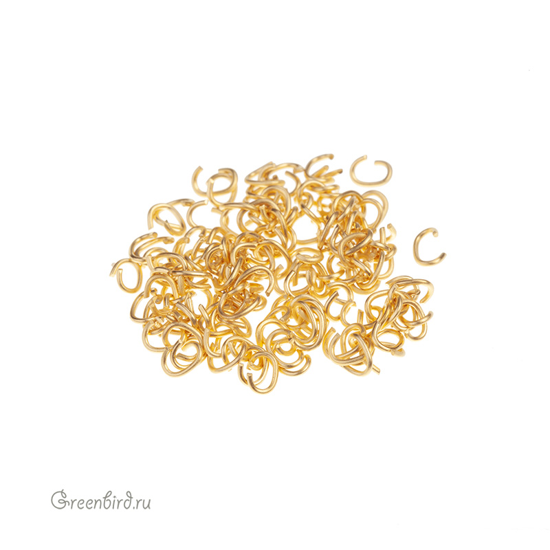 Фурнитура для бижутерии - соединительные кольца. Материал: сталь, покрытие: матовое золото. Размер: 3 х 3,5 мм, толщина проволоки: 0,5 мм. Производство: Корея. Цена указана за 1,5 гр (примерно 100 штук).
