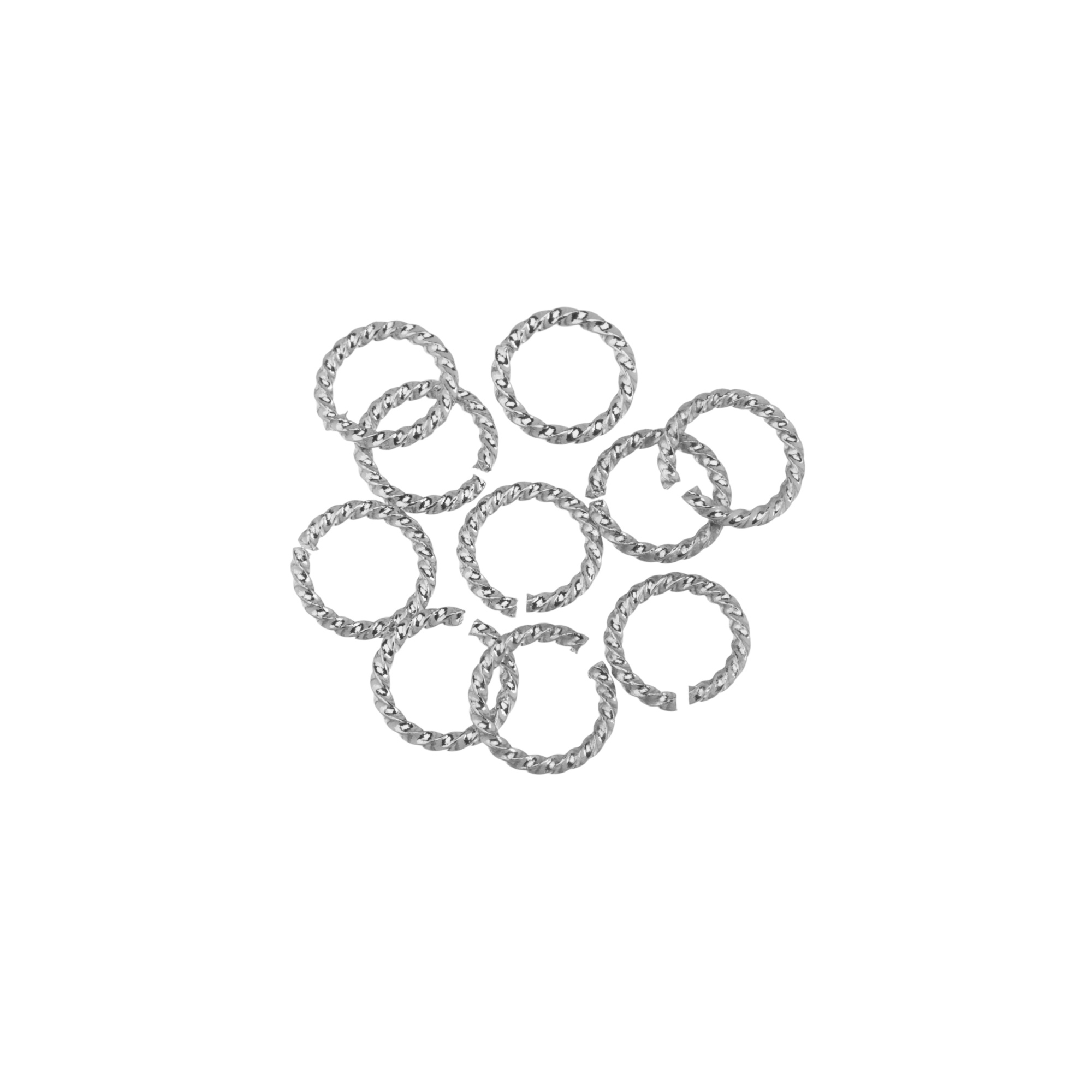 Фурнитура для бижутерии - декоративные соединительные кольца, витые (не запаяны). Материал: латунь, покрытие: родий. Диаметр (внешний): 7 мм, толщина: примерно 1 мм. В зависимости от партии размер, цвет и толщина проволоки могут незначительно отличаться. Производство: Китай. Цена указана за 10 штук.