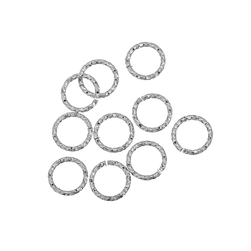 Фурнитура для бижутерии - декоративные соединительные кольца, витые (не запаяны). Материал: латунь, покрытие: родий. Диаметр (внешний): 8 мм, толщина: примерно 1 мм. В зависимости от партии размер, цвет и толщина проволоки могут незначительно отличаться. Производство: Китай. Цена указана за 10 штук.