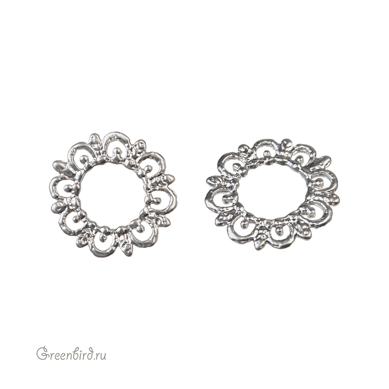 Фурнитура для бижутерии - филигрань (коннектор без колечек) в форме круглой рамки с цветочным узором. Материал: пьютер (оловянный сплав), покрытие: матовый родий. Размер: 19,5 х 19 мм, толщина: 1,4 мм, внутреннее отверстие: 9,9 мм. Производство: Корея. Цена указана за 1 шт.