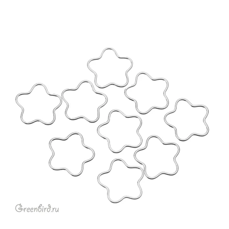 Фурнитура для бижутерии - коннектор плоский в форме цветка-пятилистника. Материал: латунь, покрытие: родий. Размер: 20 х 20 х 1 мм. Производство: Китай. Цена указана за 1 шт.