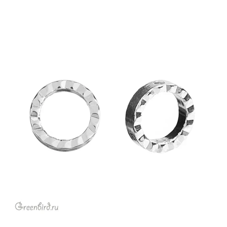 Фурнитура для бижутерии - коннектор-рамка. Материал: латунь, покрытие: родий. Внешний диаметр: 8 мм, внутренний диаметр: 5,5 мм, толщина: 2 мм. Два сквозных отверстия по центру, диаметр: 1 мм. Производство: Китай. Цена указана за 1 штук.