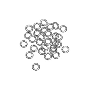 Фурнитура для бижутерии - коннектор-кольцо малый. Материал: латунь, покрытие: родий. Внешний диаметр: 4,8-5 мм, внутренний диаметр: 2,5 мм, толщина: 1x1,2 мм. Производство: Китай. Цена указана за 30 штук.