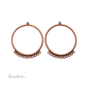 Коннектор, материал: латунь, цвет: античная медь, размер: 32 х 38 мм, внутренний диаметр: 29 мм, отверстие: 1,2 мм. Производство: Израиль. Цена указана за 1 шт.