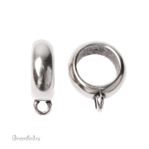 Фурнитура для бижутерии - коннектор-бейл для толстого шнура-змейки. Цвет: античное серебро. Размер: 17,5 х 14 х 4,5 мм, внутренний диаметр: 10 мм, отверстие петельки: 2 мм. Производство: Греция. Цена указана за 1 шт.