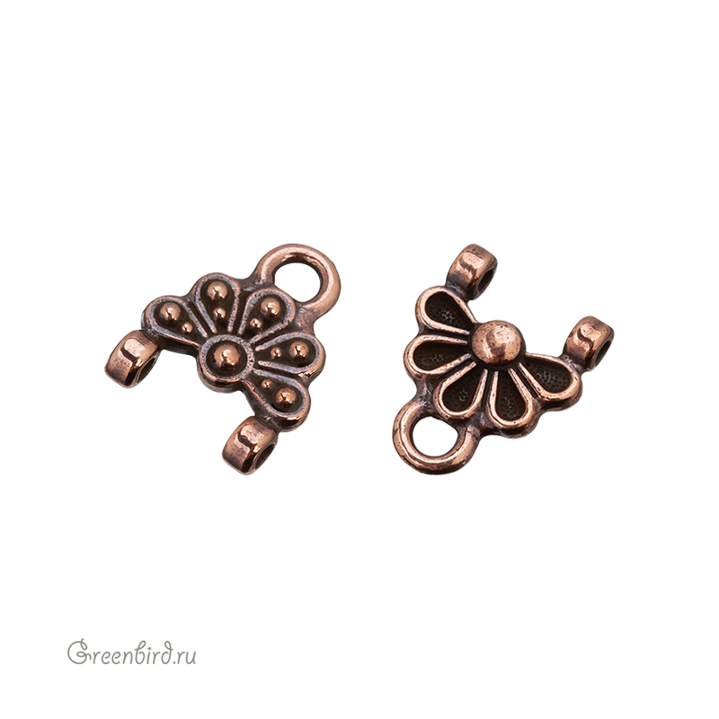 Фурнитура для бижутерии - коннектор-переходник (расширитель) на две нити. Цвет: античная медь. Размер: 11,7 х 11,2 мм, петля: 2,5 мм, колечки: 1,4 мм. Цена указана за 1 шт.