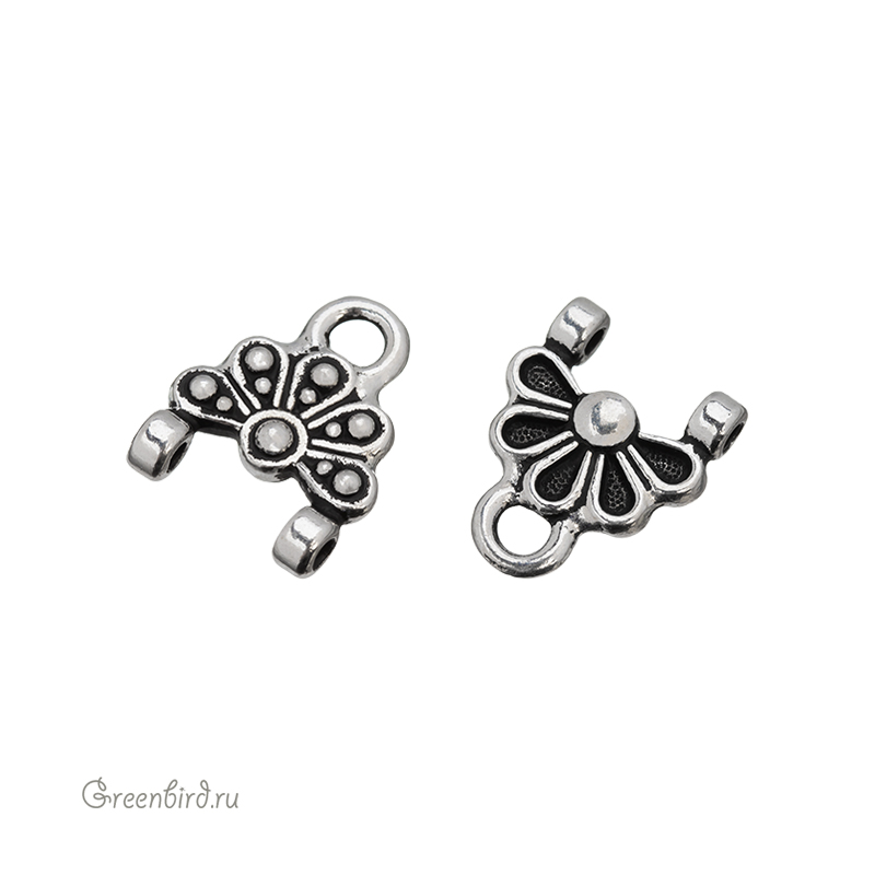 Фурнитура для бижутерии - коннектор-переходник (расширитель) на две нити. Цвет: античное серебро. Размер: 11,7 х 11,2 мм, петля: 2,5 мм, колечки: 1,4 мм. Цена указана за 1 шт.