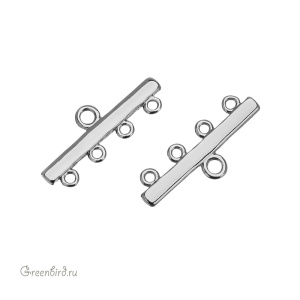 Фурнитура для бижутерии - коннектор плоский на четыре нити. Материал: латунь, покрытие: родий. Размер с колечками: 21 х 8 мм, толщина: 1,5 мм, внутренний диаметр маленьких колечек: 1,2 мм, внутренний диаметр большого колечка: 1,9 мм. Производство: Китай. Цена указана за 1 шт.