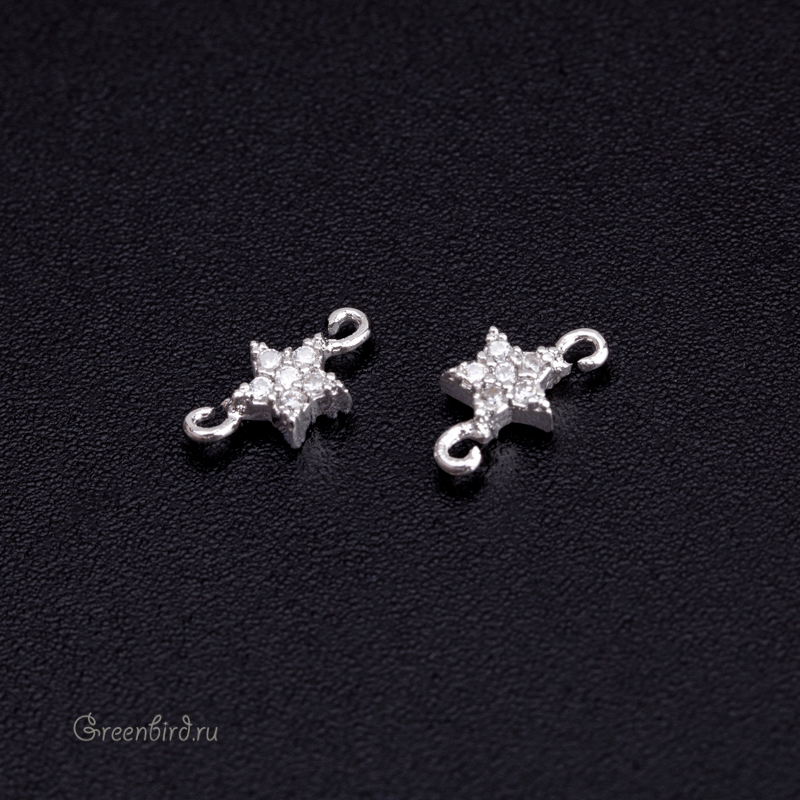 Фурнитура для бижутерии - коннектор с фианитами. Материал: латунь, покрытие: родий. Размер с колечками: 9,1 х 4,5 мм. Производство: Корея. Цена указана за 1 штуку.