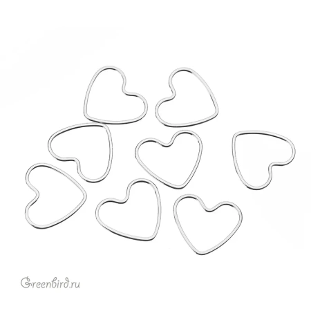 Фурнитура для бижутерии - коннектор плоский в форме сердечка. Материал: латунь, покрытие: родий. Размер: 19 х 21 х 1 мм. Производство: Китай. Цена указана за 1 шт.