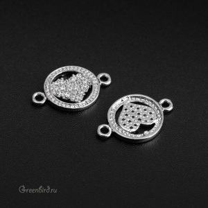 Фурнитура для бижутерии - коннектор с фианитами. Материал: латунь, покрытие: родий. Размер с колечками: 16,5 х 10,8 мм. Производство: Корея. Цена указана за 1 штуку.