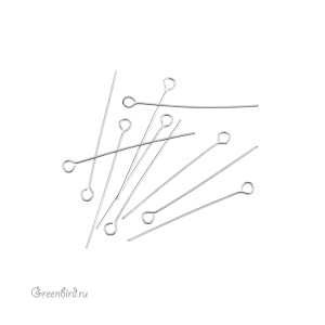 Фурнитура для бижутерии - пины с колечком. Материал: латунь, покрытие: родий. Длина: 35 мм, толщина: 0,6 мм, внутренний диаметр колечка: 2,2 мм. Производство: Китай. Цена указана за 10 шт.