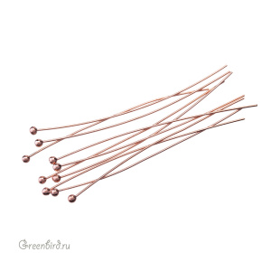 Фурнитура для бижутерии - пины с шариком. Материал: латунь, покрытие: розовое золото. Длина: 50 мм, толщина: 0,5 мм, диаметр шарика: 2 мм. Производство: Корея. Цена указана за 10 шт.
