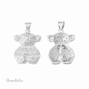 Фурнитура для бижутерии - подвеска с фианитами в форме мишки с колечком и бейлом. Материал: латунь, покрытие: родий. Размер с колечком и бейлом: 27 х 17 х 5 мм, внутренний диаметр колечка: 1,4 мм, размер бейла: 6 х 4 мм. Производство: Китай. Цена указана за 1 шт.