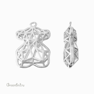 Фурнитура для бижутерии - подвеска в форме мишки с колечком. Материал: латунь, покрытие: родий. Размер с колечком: 20 х 14,5 х 5,7 мм, внутренний диаметр колечка: 1,4 мм. Размер и форма могут незначительно варьироваться. Производство: Китай. Цена указана за 1 шт.