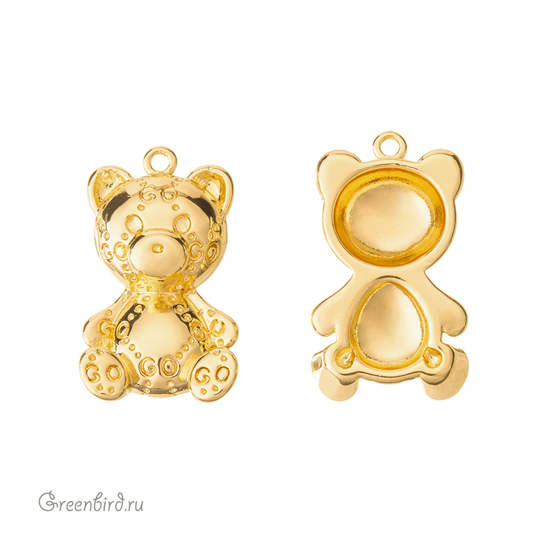 Фурнитура для бижутерии - подвеска в форме мишки с колечком. Материал: латунь, покрытие: золото. Размер с колечком: 19 х 11 х 4,5 мм, внутренний диаметр колечка: 1,1 мм. Производство: Китай. Цена указана за 1 шт.