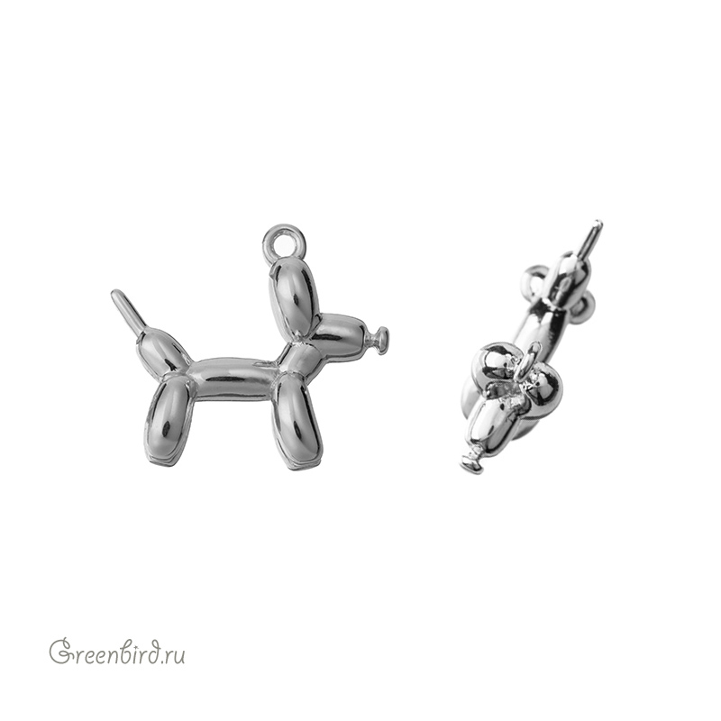 Фурнитура для бижутерии - подвеска в форме собачки из шарика. Материал: латунь, покрытие: родий. Размер с колечком: 15,1 х 17,1 х 6 мм, внутренний диаметр колечка: 1 мм. Производство: Китай. Цена указана за 1 шт.