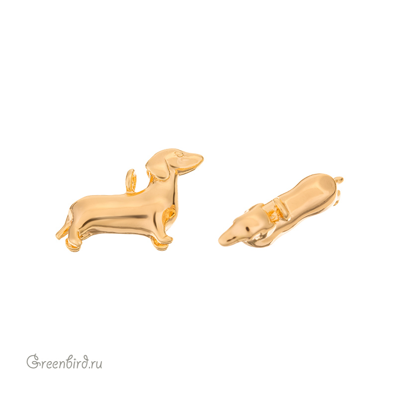 Фурнитура для бижутерии - подвеска в виде фигурки собаки породы Такса. Материал: латунь, покрытие: золото. Размер: 14 х 10 мм, толщина: 3,5 мм. Производство: Китай. Цена указана за 1 шт.