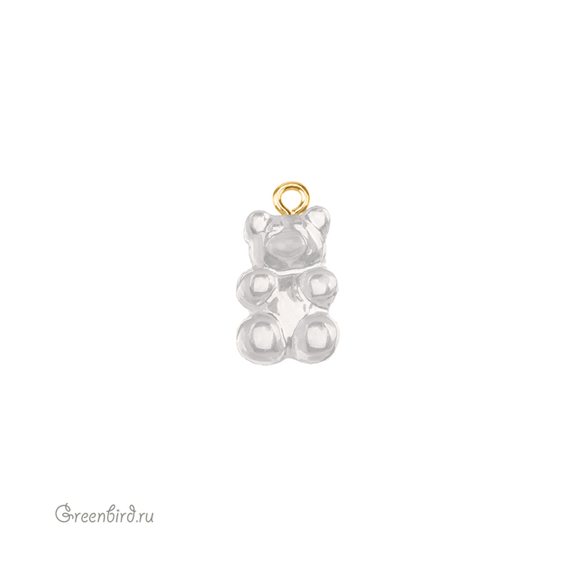Фурнитура для бижутерии - подвеска в форме мармеладного мишки. Материал: пластик, цвет: прозрачный, материал колечка: латунь, покрытие фурнитуры: золото. Размер с колечком: 20 х 11 х 6,5 мм, внутренний диаметр колечка: 1,8 мм. Производство: Китай. Цена указана за 1 шт.
