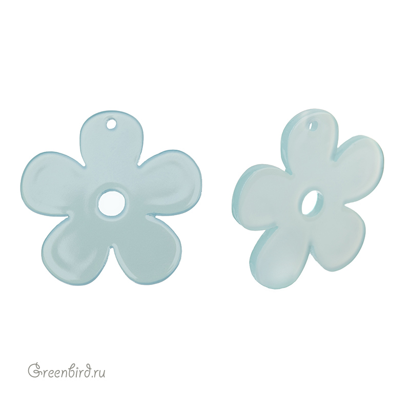 Элемент для бижутерии - подвеска в форме цветка. Материал: пластик, цвет: голубой. Размер: 29 мм, толщина: 2,5 мм, диаметр отверстия: 1,6 мм. Производство: Китай. Цена указана за 1 шт.