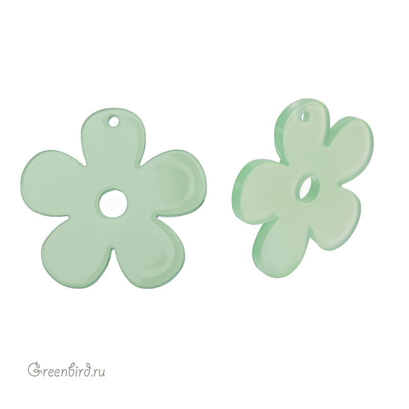 Элемент для бижутерии - подвеска в форме цветка. Материал: пластик, цвет: зеленый. Размер: 29 мм, толщина: 2,5 мм, диаметр отверстия: 1,6 мм. Производство: Китай. Цена указана за 1 шт.