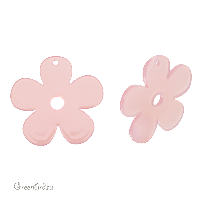 Элемент для бижутерии - подвеска в форме цветка. Материал: пластик, цвет: розовый. Размер: 29 мм, толщина: 2,5 мм, диаметр отверстия: 1,6 мм. Производство: Китай. Цена указана за 1 шт.