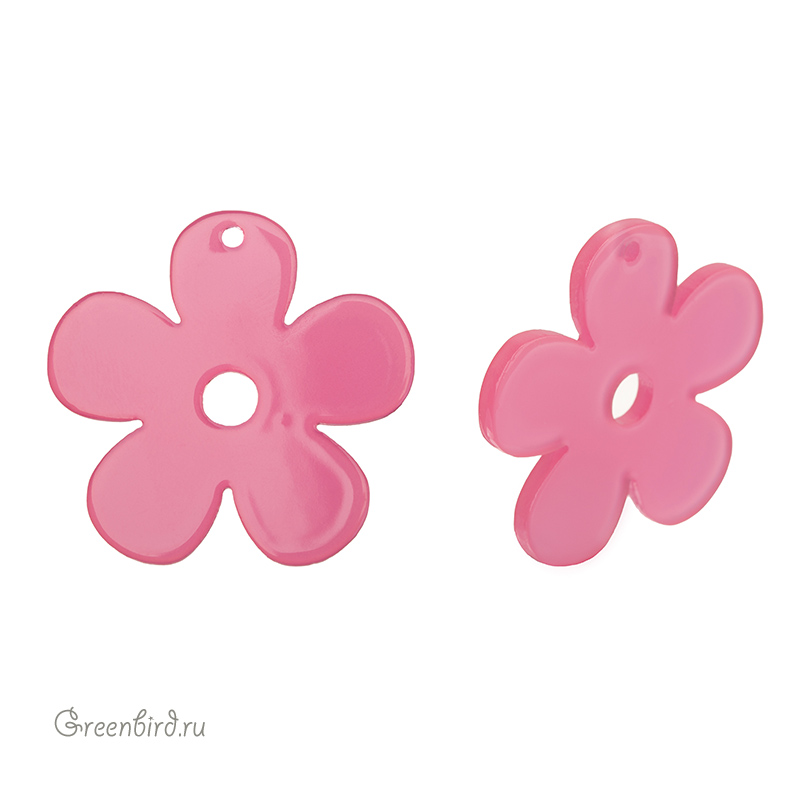 Элемент для бижутерии - подвеска в форме цветка. Материал: пластик, цвет: фуксия. Размер: 29 мм, толщина: 2,5 мм, диаметр отверстия: 1,6 мм. Производство: Китай. Цена указана за 1 шт.