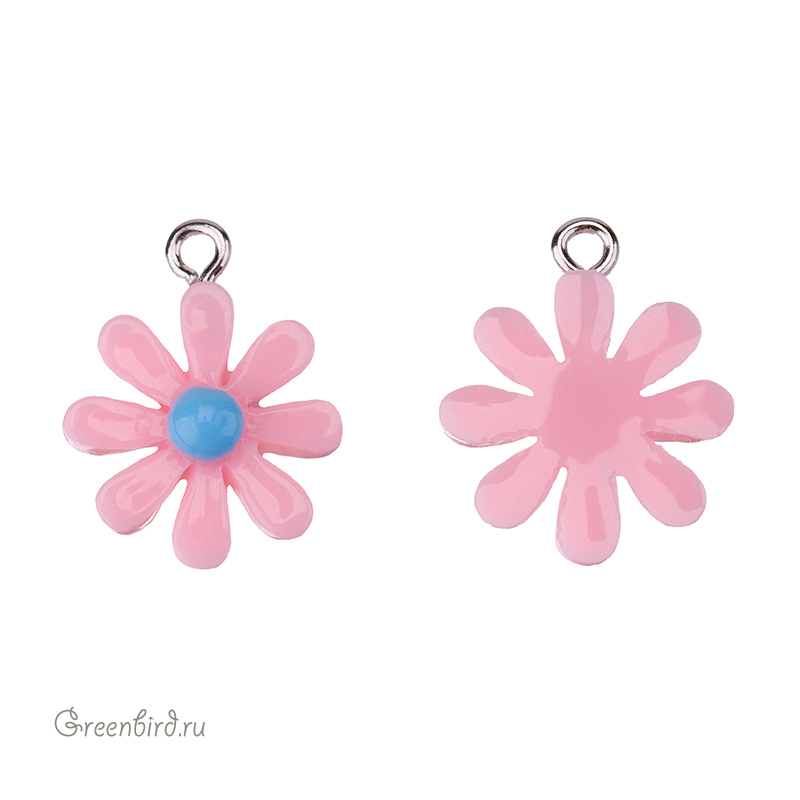 Фурнитура для бижутерии - подвеска в форме цветка. Материал: пластик, цвет: розовый. Размер с колечком: 21 х 15 х 5 мм, внутренний диаметр колечка: 2 мм. Производство: Китай. Цена указана за 1 шт.