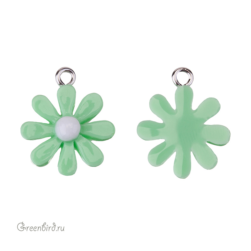 Фурнитура для бижутерии - подвеска в форме цветка. Материал: пластик, цвет: зеленый. Размер с колечком: 21 х 15 х 5 мм, внутренний диаметр колечка: 2 мм. Производство: Китай. Цена указана за 1 шт.