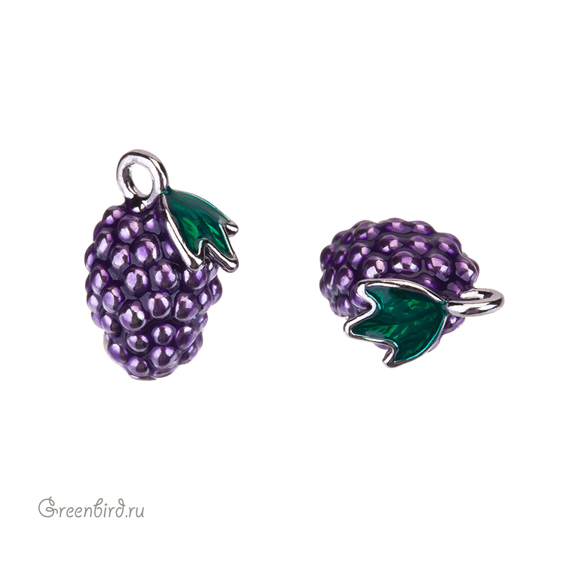Фурнитура для бижутерии - подвеска в форме ежевики с эмалью. Материал: латунь, покрытие: родий. Цвет: красный, зеленый. Размер с колечком: 12,2 х 8 мм, внутренний размер колечка: 1,5 мм. Производство: Китай. Цена указана за 1 шт.
