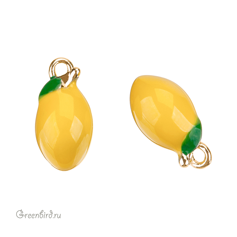 Фурнитура для бижутерии - подвеска в форме лимона с эмалью. Материал: латунь, покрытие: золото. Цвет: желтый, зеленый. Размер с колечком: 13 х 7 мм, внутренний размер колечка: 1,5 мм. Производство: Китай. Цена указана за 1 шт.