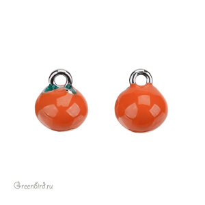 Фурнитура для бижутерии - подвеска в форме мандарина с эмалью. Материал: латунь, покрытие: родий. Цвет: оранжевый, зеленый. Размер с колечком: 8 х 6,5 мм, внутренний размер колечка: 1,4 мм. Производство: Китай. Цена указана за 1 шт.