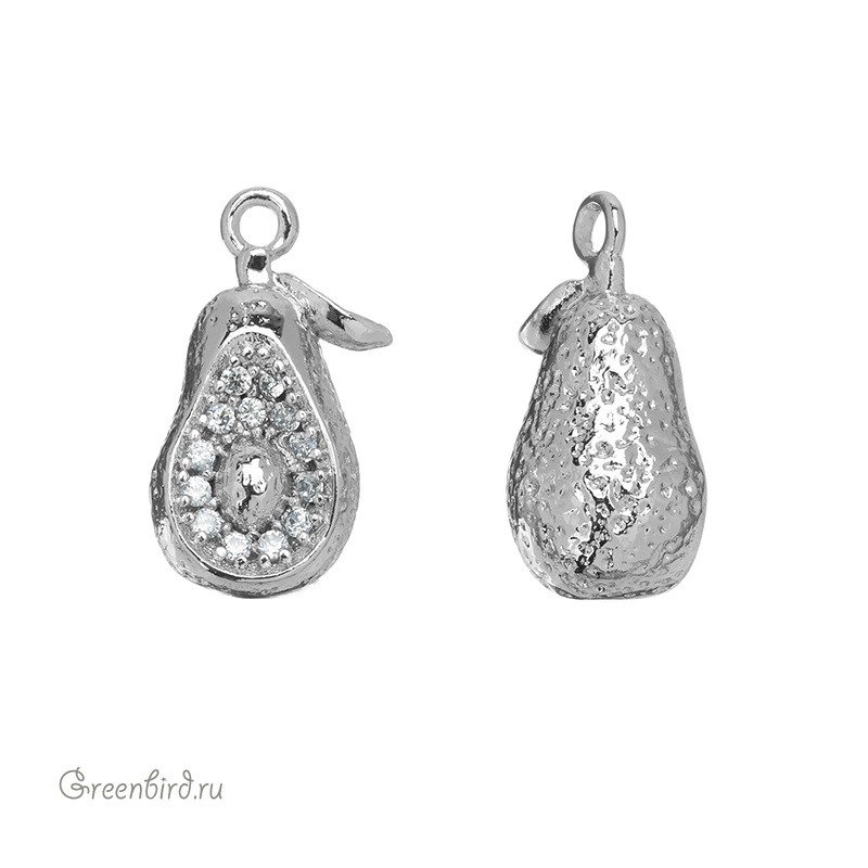 Фурнитура для бижутерии - объемная подвеска в форме груши, украшенная фианитами. Материал: латунь, покрытие: родий. Размер с колечком: 16 х 8,3 мм, внутренний диаметр колечка: 1,4 мм. Производство: Китай. Цена указана за 1 шт.