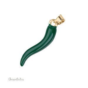 Фурнитура для бижутерии - подвеска с эмалью объемная в виде перчика. Материал: латунь, покрытие: золото. Цвет эмали: зеленый. Размер с колечком: 27 х 6 мм, толщина: от 2,5 до 5 мм, внутренний диаметр колечка: 3 мм. Производство: Китай. Цена указана за 1 шт.
