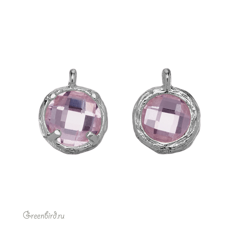 Фурнитура для бижутерии - подвеска круглая с кристаллом. Материал: латунь, покрытие: родий. Цвет вставки: Blush Rose. Размер с колечком: 9,5 х 7,5 х 4 мм, внутренний диаметр колечка: 1,2 мм. Производство: Китай. Цена указана за 1 шт.