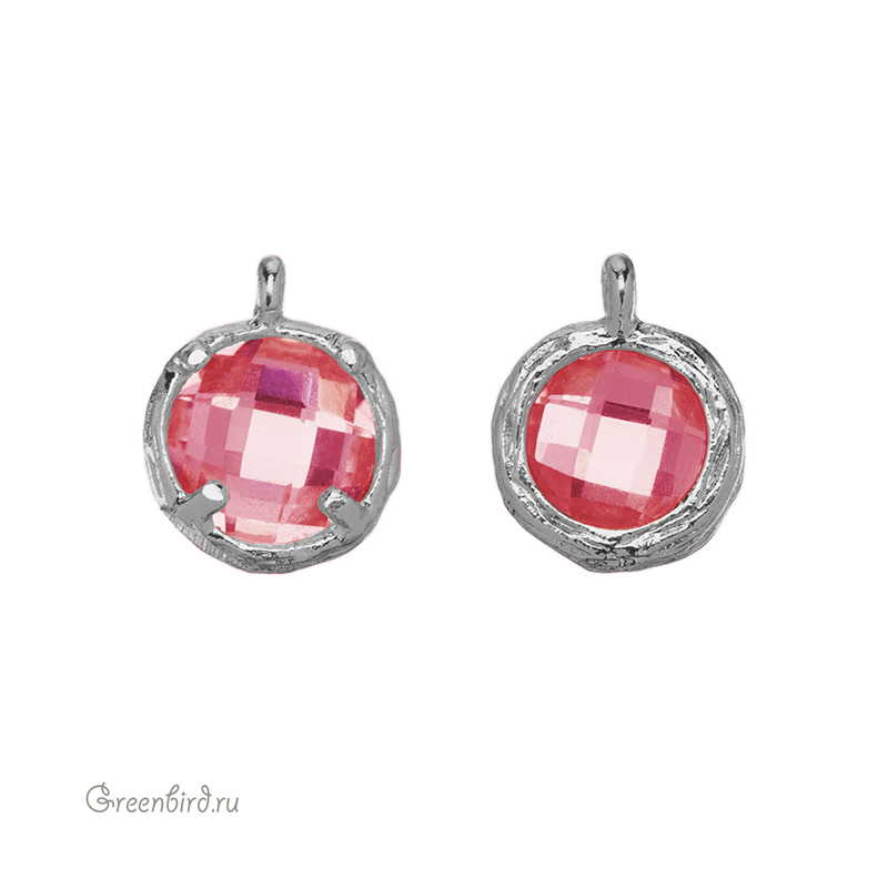 Фурнитура для бижутерии - подвеска круглая с кристаллом. Материал: латунь, покрытие: родий. Цвет вставки: Padparadscha. Размер с колечком: 9,5 х 7,5 х 4 мм, внутренний диаметр колечка: 1,2 мм. Производство: Китай. Цена указана за 1 шт.