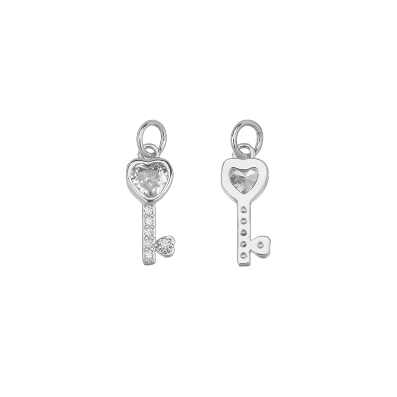 Фурнитура для бижутерии - подвеска в форме ключа с фианитами. Материал: латунь, покрытие: родий. Цвет вставки: белый. Размер с колечком: 16 х 6,5 мм, внутренний диаметр колечка: 3,5 мм. Производство: Китай. Цена указана за 1 шт.