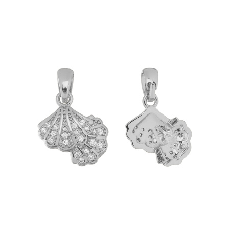 Фурнитура для бижутерии - подвеска в форме ракушек, с бейлом. Вставка: фианиты. Материал: латунь, цвет металла: родий. Цвет вставки: Crystal. Размер с колечком: 15 х 10 мм, внутренний диаметр колечка: 1,4 мм, размер бейла: 6 x 3 мм. Производство: Китай. Цена указана за 1 шт.