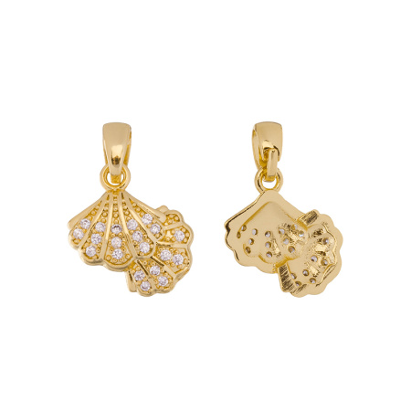 Фурнитура для бижутерии - подвеска в форме ракушек, с бейлом. Вставка: фианиты. Материал: латунь, цвет металла: золото. Цвет вставки: Crystal. Размер с колечком: 15 х 10 мм, внутренний диаметр колечка: 1,4 мм, размер бейла: 6 x 3 мм. Производство: Китай. Цена указана за 1 шт.