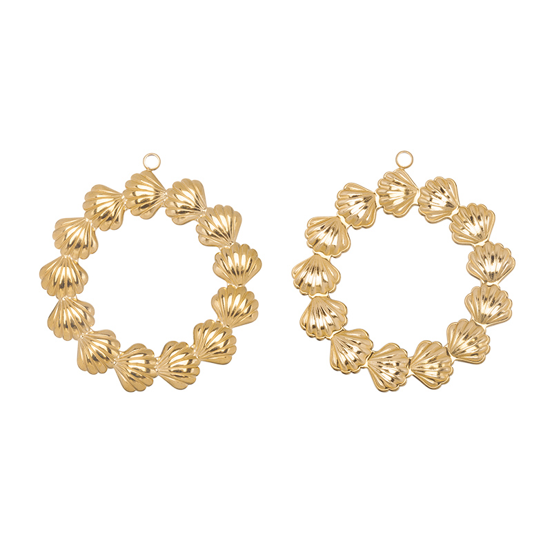 Фурнитура для бижутерии - подвеска в форме круга из ракушек. Материал: латунь, цвет покрытия: золото. Размер с колечком: 35 х 38 мм, внутренний диаметр колечка: 1,8 мм. Производство: Китай. Цена указана за 1 шт.