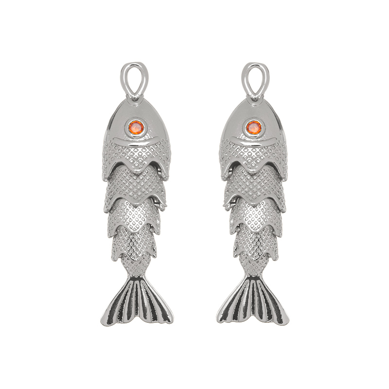 Фурнитура для бижутерии - подвеска в форме рыбки с фианитами. Материал: латунь, цвет покрытия: родий. Размер с колечком: 8,5 х 33,5 х 6,5 мм. Производство: Китай. Цена указана за 1 шт.