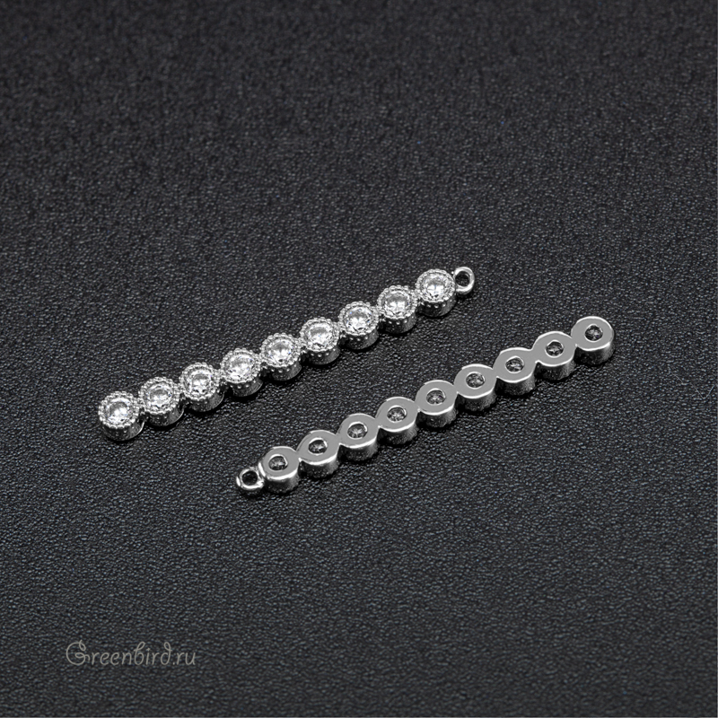 Фурнитура для бижутерии - подвеска с фианитами. Материал: латунь, покрытие: родий. Размер с колечком: 3 х 26 х 1,9 мм, внутренний диаметр колечка: 0,8 мм. Производство: Китай. Цена указана за 1 шт.