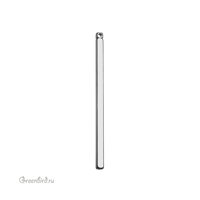 Фурнитура для бижутерии - подвеска в форме прямоугольной палочки с объемным цельнолитым кольцом. Материал: латунь, покрытие: родий. Размер с кольцом: 2 x 2 х 40 мм, внутренний диаметр кольца: 0,9 мм. Производство: Китай. Цена указана за 1 шт.