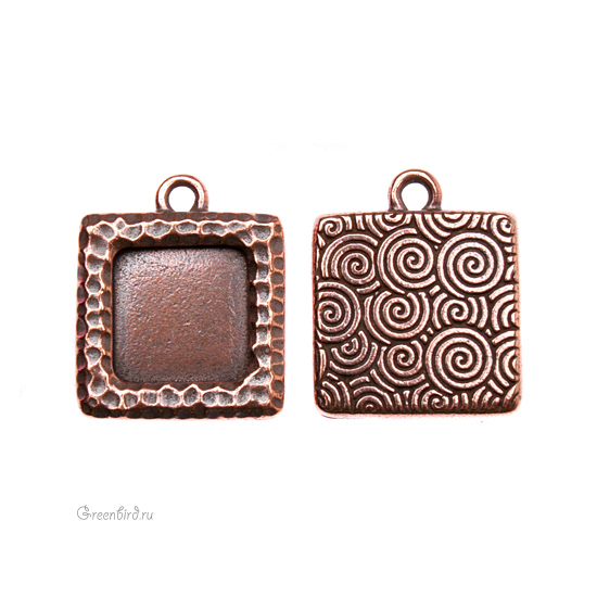 Фурнитура для рукоделия - подвеска-рамка. Цвет: античная медь. Размер: 18 х 18 мм, внутренний квадрат: 12 мм, высота с петелькой: 22 мм. Идеально подходит для заливки эпоксидной смолой. Цена указана за 1 шт.