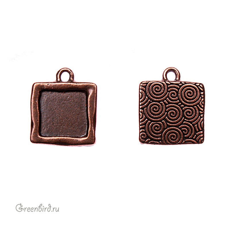 Фурнитура для рукоделия - подвеска-рамка. Цвет: античная медь. Размер: 18 х 18 мм, внутренний квадрат: 12 мм, высота с петельками: 20 мм. Идеально подходит для заливки эпоксидной смолой. Цена указана за 1 шт.