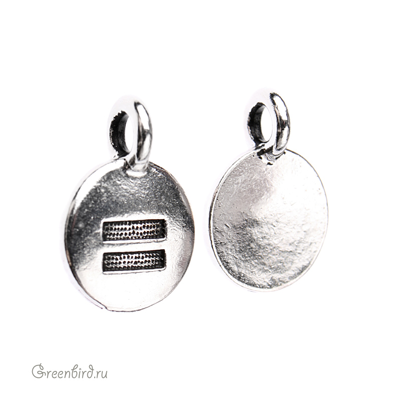Фурнитура для бижутерии - подвеска круглая с рисунком. Цвет: античное серебро. Размер с петелькой: 16,5 х 11,7 мм, отверстие петельки: 3 мм. Цена указана за 1 шт.